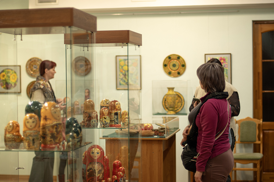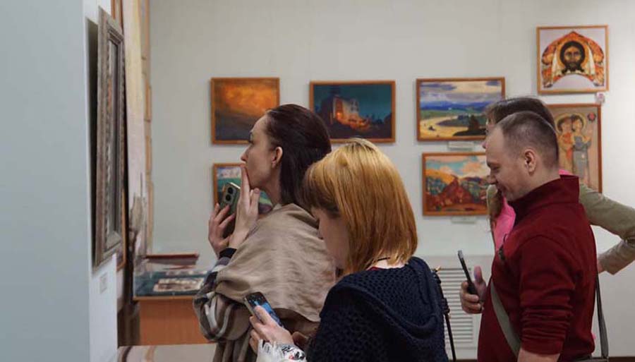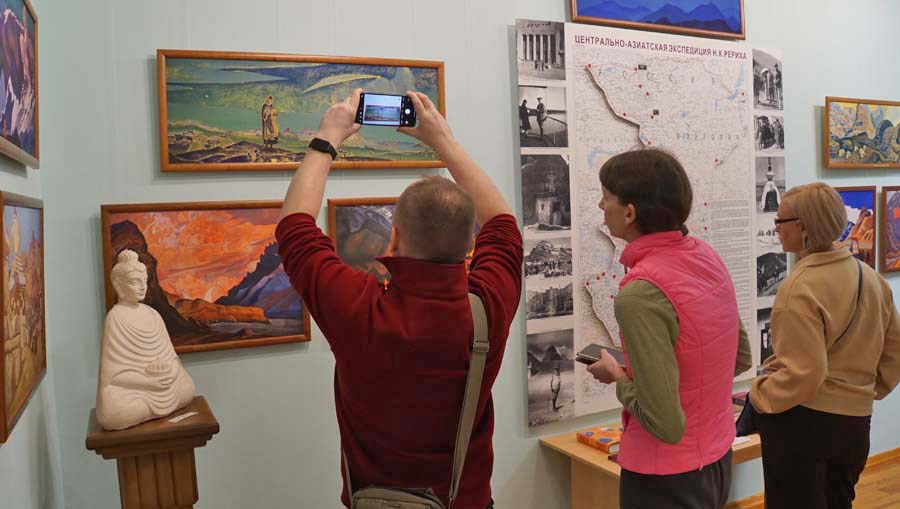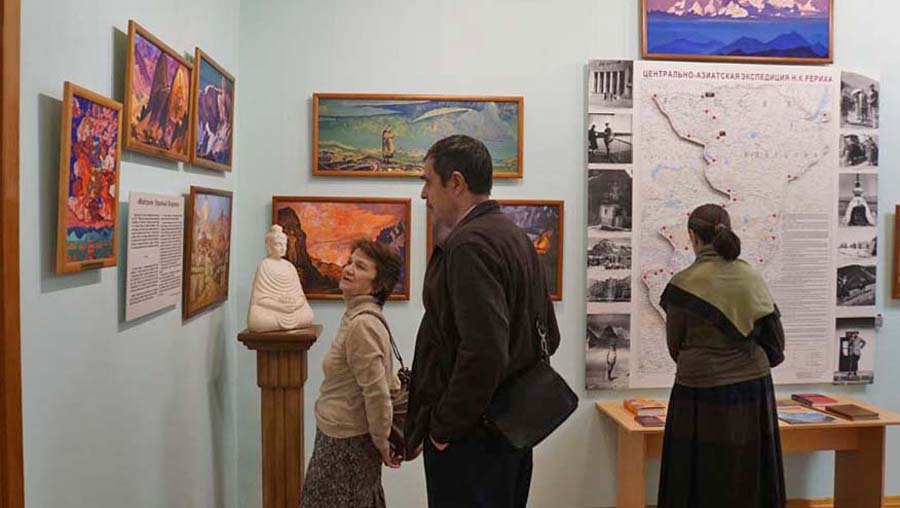 В течение дня посетители имели возможность знакомиться с выставками, отражающими жизнь и творчество семьи Рерихов, а также с выставкой декоративно-прикладного искусства и живописи «Мир, в котором хочется жить», на которой представлены работы трёх художников — А.П. Веселёва (c. Верх-Уймон, Республика Алтай), Т.Е. Наговицыной (г. Барнаул) и Н.Т. Черниковой (г. Новосибирск).